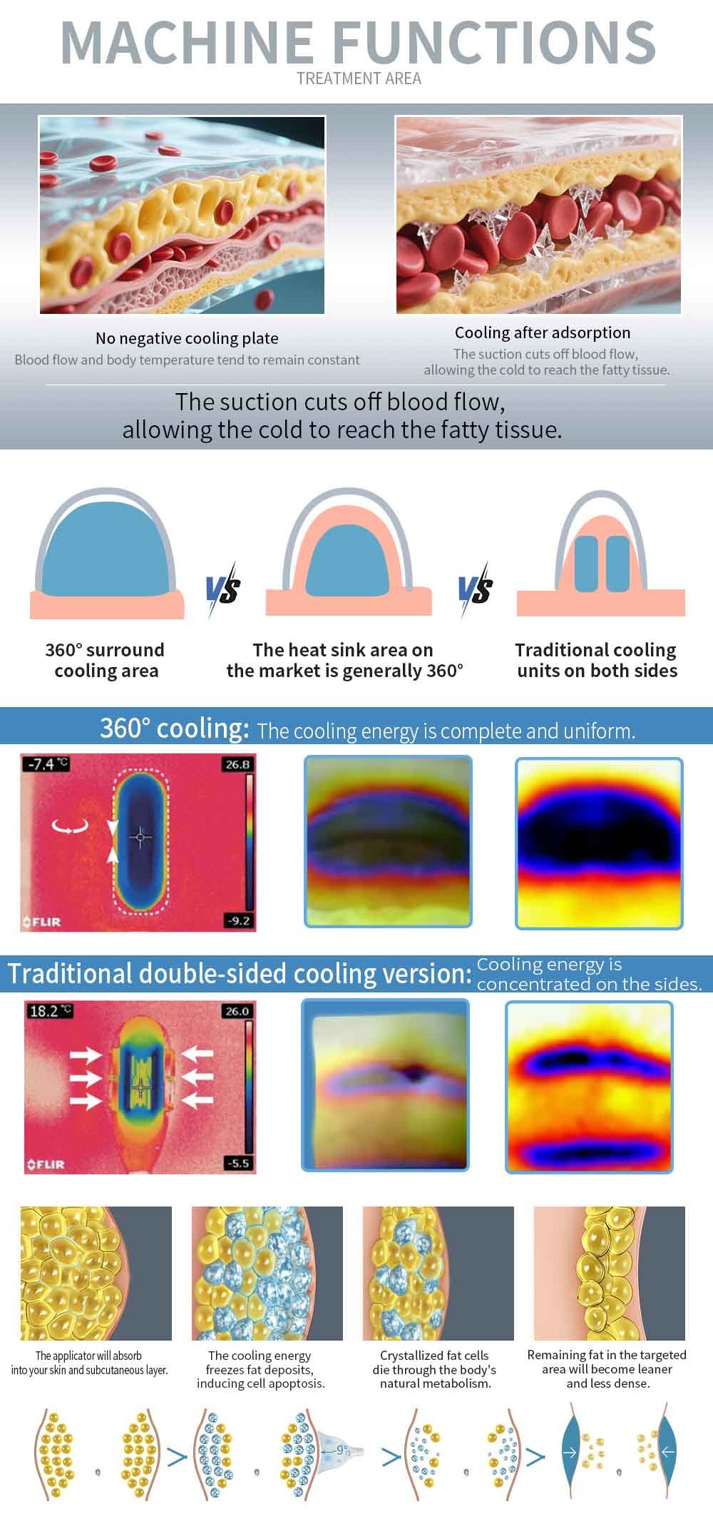 Features of 360° Surrounding Cooling and Vacuum technology Cryolipolysis Device